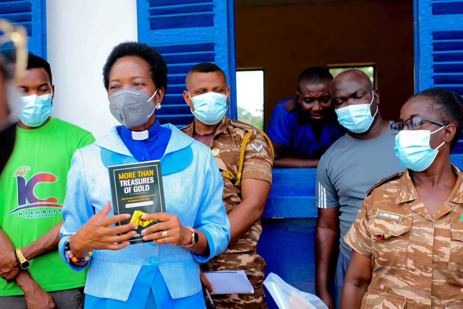 Explaining what the book, MORE THAN TREASURES OF GOLD, is about to the Prison Officers at the Senior Correctional Centre. This was at an event where we donated several copies of both books to the inmates and officers together with 250 gari packages. Every boy got a package.